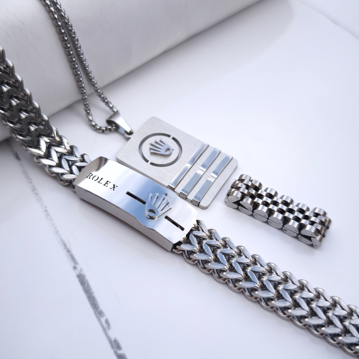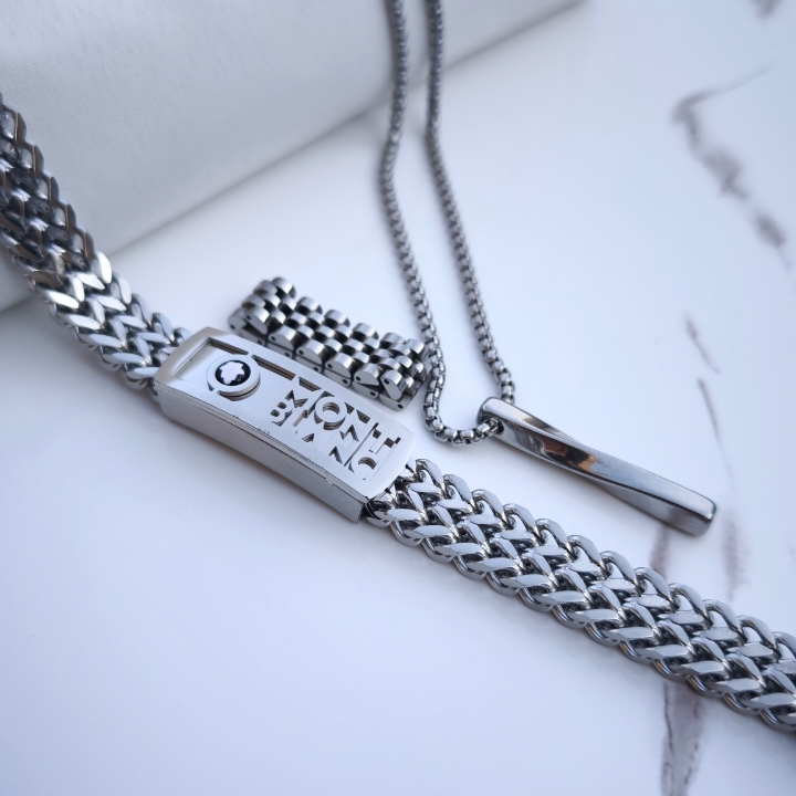 این ست اکسسوری مردانه جز بهترین انتخاب ها برای زیورالات مردانه مناسب هدیه هستند. با جنس استیل رنگ ثابت و مقاوم و ضد حساسیت میتواند استایل مردانه شما و عزیزانتان رو زیبا و کامل کند و یک کادو مردانه خاص و ماندگار باشد.