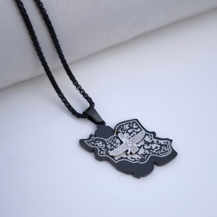گردنبند نقشه ایران با نشان فروهر مشکی استیل همراه زنجیر ویتالی