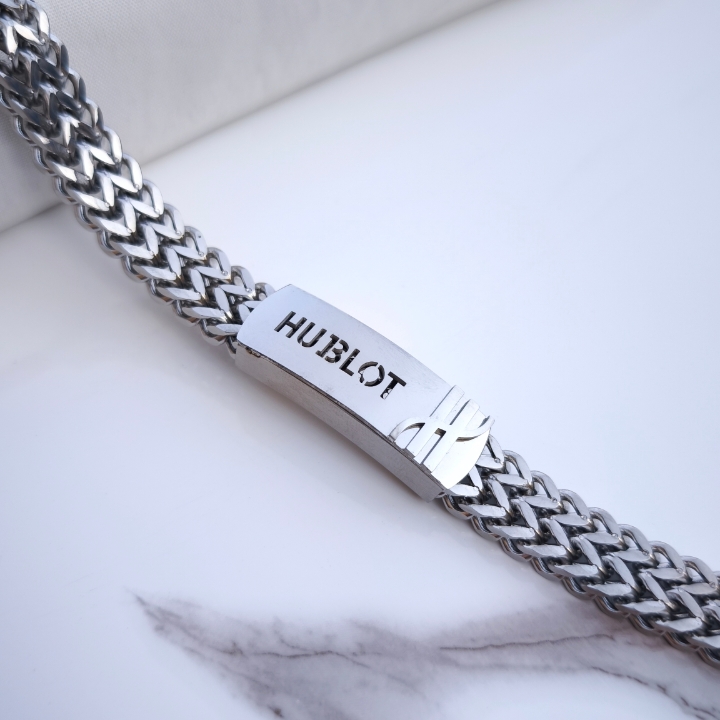 دستبند هابلوت نقره ای مردانه استیل بافت زنجیری قفل مگنتی