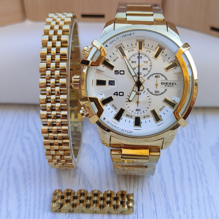 ست ساعت دستبند انگشتر مردانه طلایی استیل