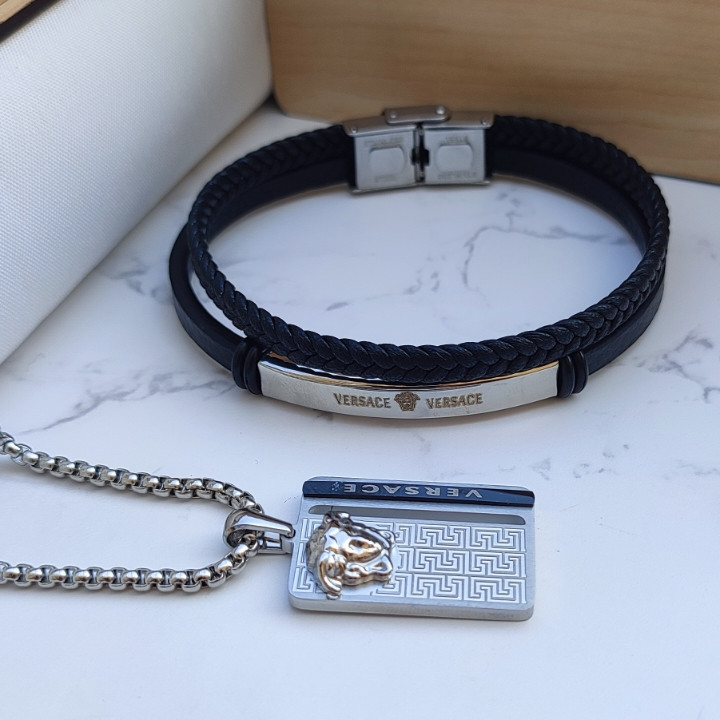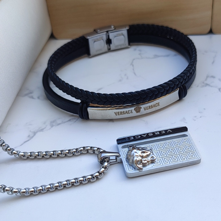 دستبند چرمی - گردنبند استیل