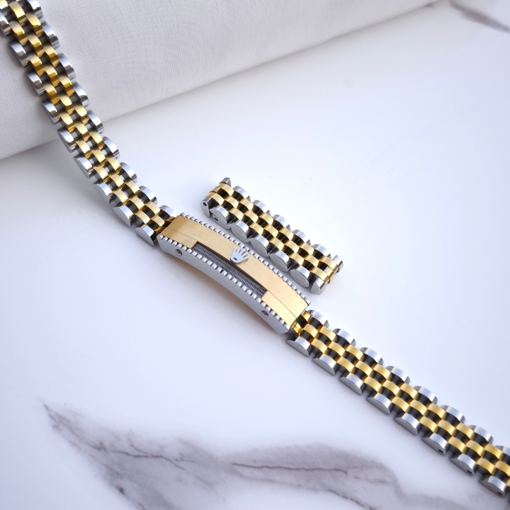 ست دستبند انگشتر طلایی نقره ای مردانه رولکس استیل