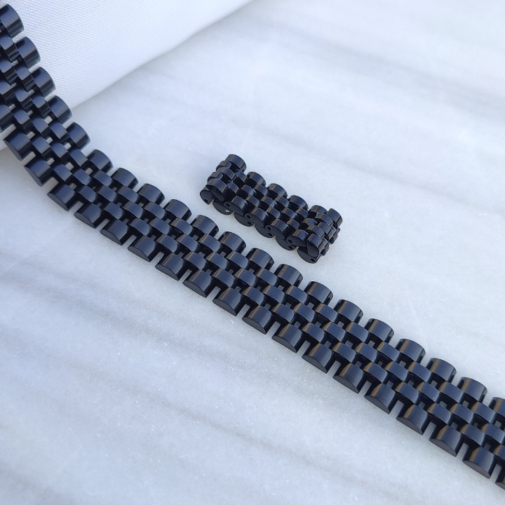 دستبند استیل مشکی با طول ۲۱ سانتیمتر و بند پیندار قابل کوتاه شدند، برای انواع مچ دست مناسب است. قفل کتابی آن ایمنی و راحتی را تضمین میکند. انگشتر استیل این ست نیز دارای سایزبندی متنوع بوده و جلوهای خاص به استایل شما میبخشد.