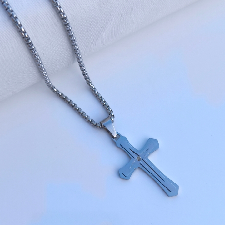 گردنبند صلیب نقره ای استیل همراه زنجیر ویتالی