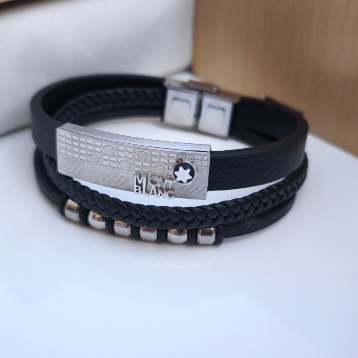 دستبند چرمی مردانه مونتبلانک سه دور مشکی