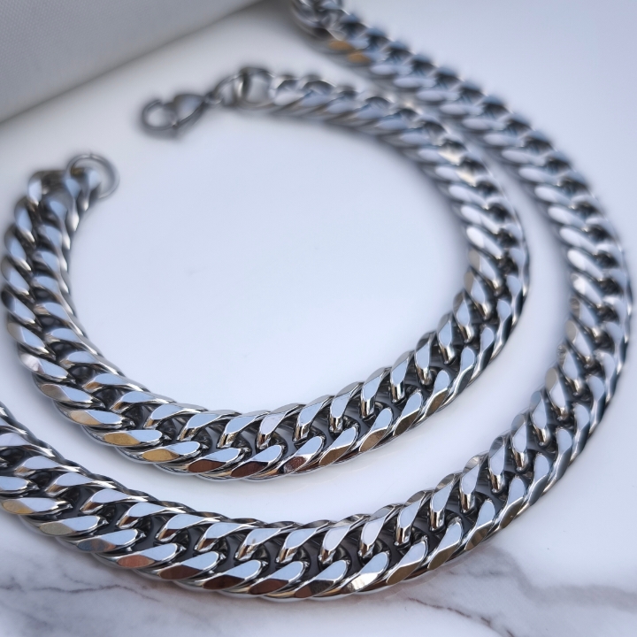 ست گردنبند دستبند مردانه ۱۰ میل کارتیر استیل
