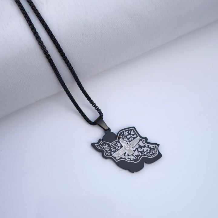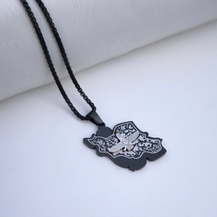 گردنبند نقشه ایران با نشان فروهر مشکی استیل همراه زنجیر ویتالی