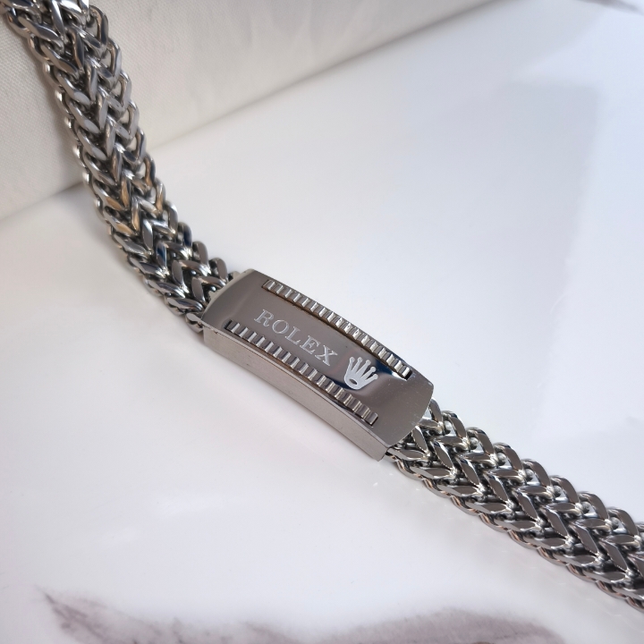 دستبند زنجیری مردانه رولکس استیل ، انتخابی بینقص برای آقایانی است که به دنبال ترکیبی از طراحی کلاسیک ، کیفیت بالا و راحتی در استفاده هستند. این مدل با بافت شیک و مستحکم ، جلوهای قدرتمند و مردانه به استایل شما میبخشد , چه در موقعیتهای رسمی ، چه در استایل روزمره.