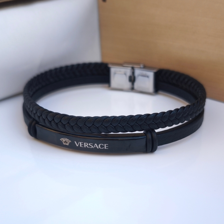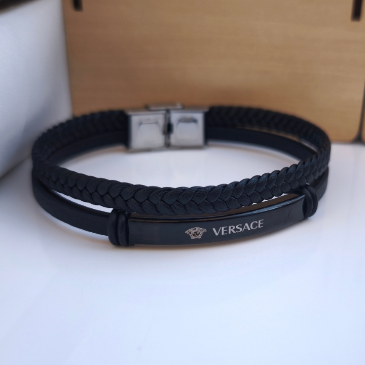 دستبند ورساچه چرمی مشکی اسپرت دو دور