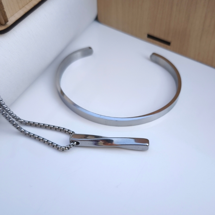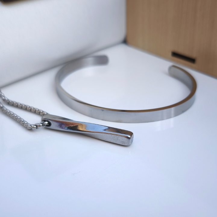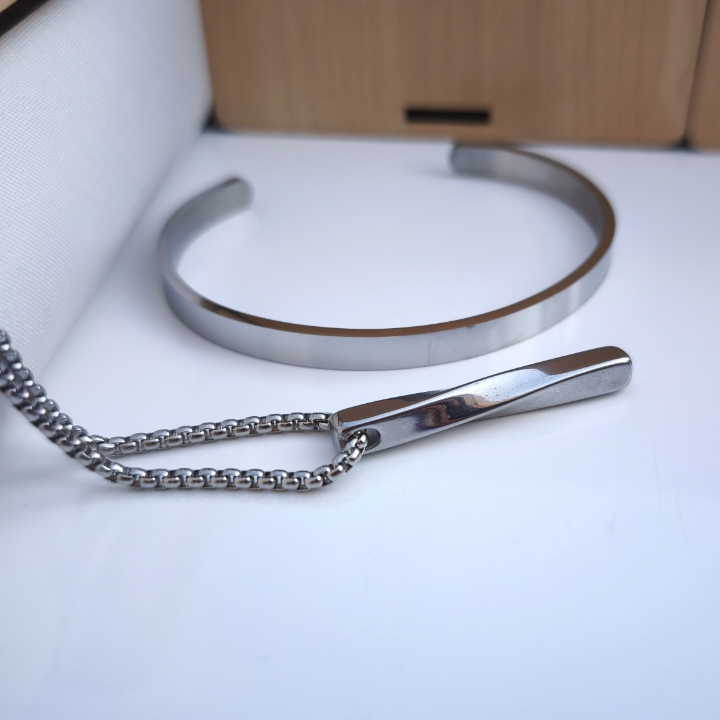اگر دنبال یه ست شیک و خاص برای تکمیل استایل مردونهت هستی، این ست گردنبند و دستبند استیل با آبکاری نقره ای دقیقاً همون چیزیه که میخوای!