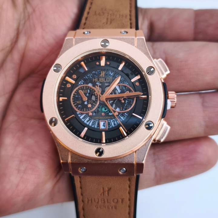 خرید ساعت چرمی هابلوت مردانه طرح سه موتور شیک ارزان