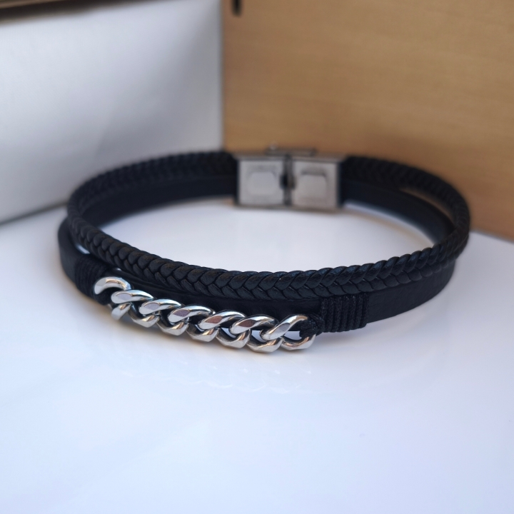 دستبند مردانه چرمی پهن ، ترکیبی بینظیر از طراحی مدرن ، کیفیت بالا و استایل خاص است. این دستبند با رنگ مشکی و بافت زیبا ، جلوهای اسپرت و در عین حال شیک به استایل روزمره یا رسمی شما میبخشد.