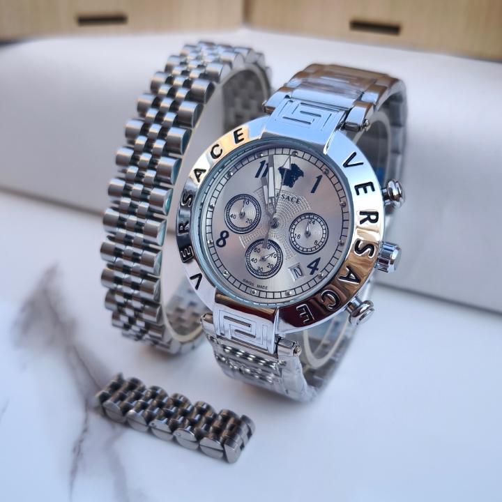 خرید ساعت مردانه سه موتور ورساچه نقره ای