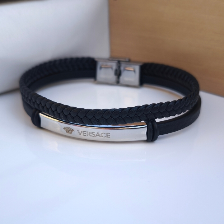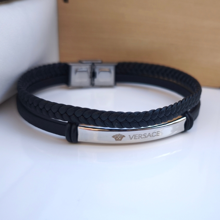دستبند ورساچه چرمی مشکی اسپرت دو دور