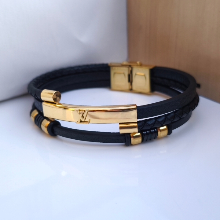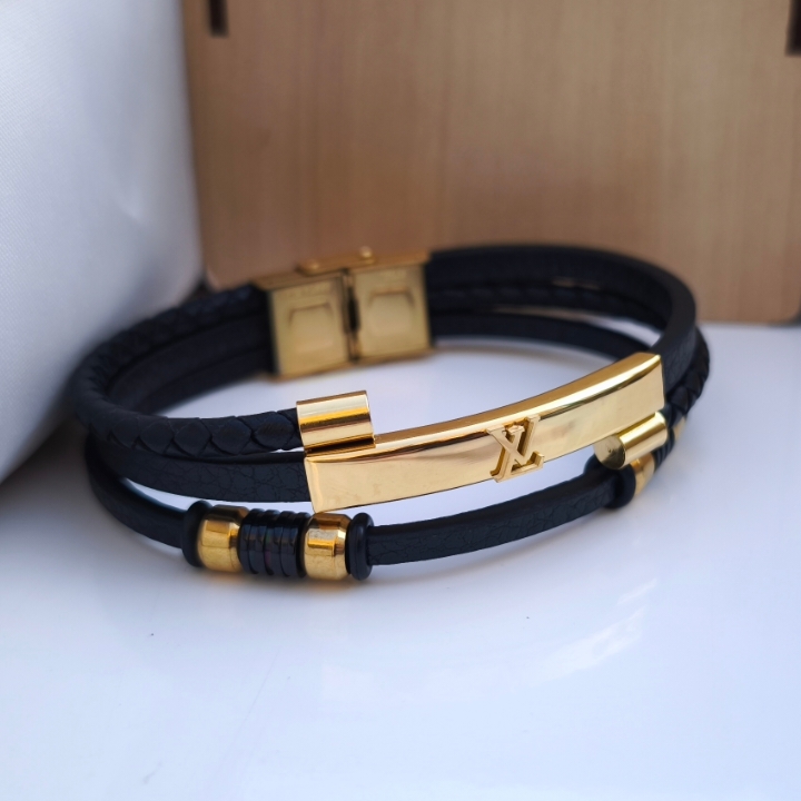 دستبند چرمی مردانه مشکی لویی ویتون چهار دور