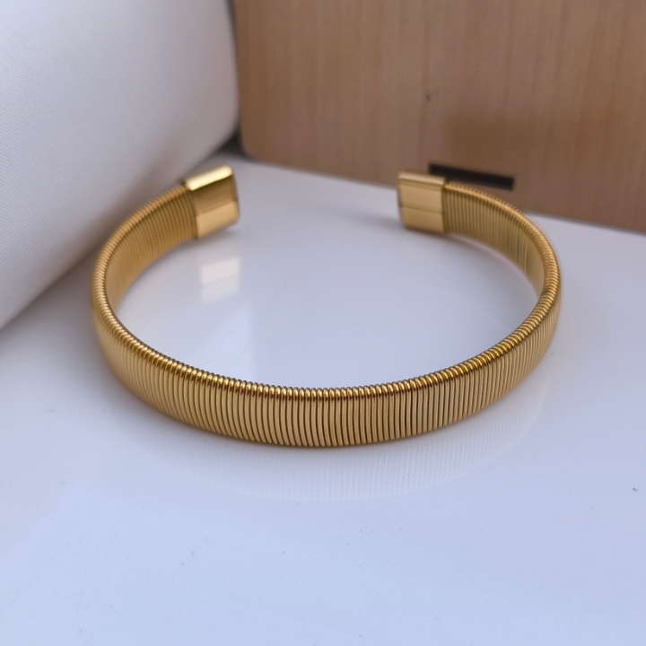 دستبند و بنگل مردانه طلایی استیل رنگ ثابت، فریسایز ، بافت و قابل شستشو