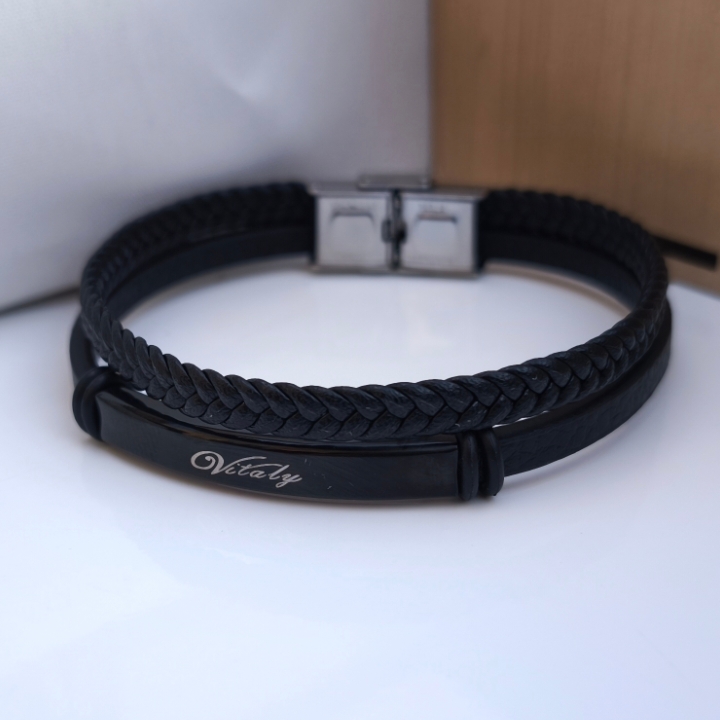 دستبند چرمی مردانه مشکی ویتالی دو دور