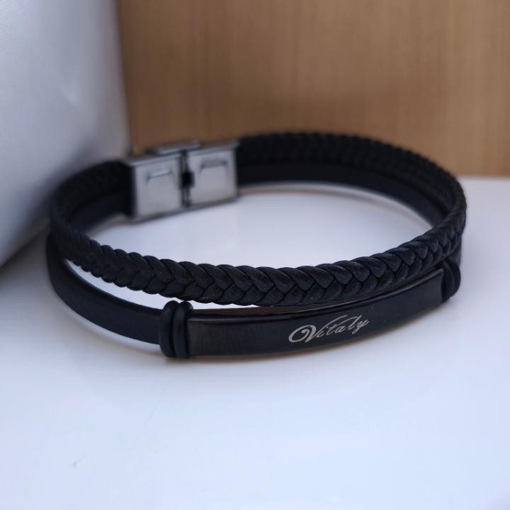 دستبند ویتالی چرمی مشکی اسپرت دو دور