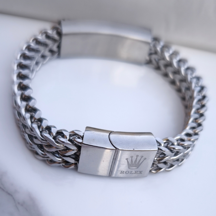 دستبند زنجیری مردانه رولکس استیل ، انتخابی بینقص برای آقایانی است که به دنبال ترکیبی از طراحی کلاسیک ، کیفیت بالا و راحتی در استفاده هستند. این مدل با بافت شیک و مستحکم ، جلوهای قدرتمند و مردانه به استایل شما میبخشد , چه در موقعیتهای رسمی ، چه در استایل روزمره.