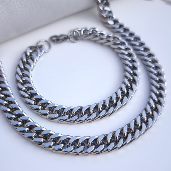 فیتِ بینقص: دستبند ۲۱ سانتیمتری و زنجیر ۶۰ سانتیمتری، هر دو قابل تنظیم برای هماهنگی کامل با استایل و راحتی تو.