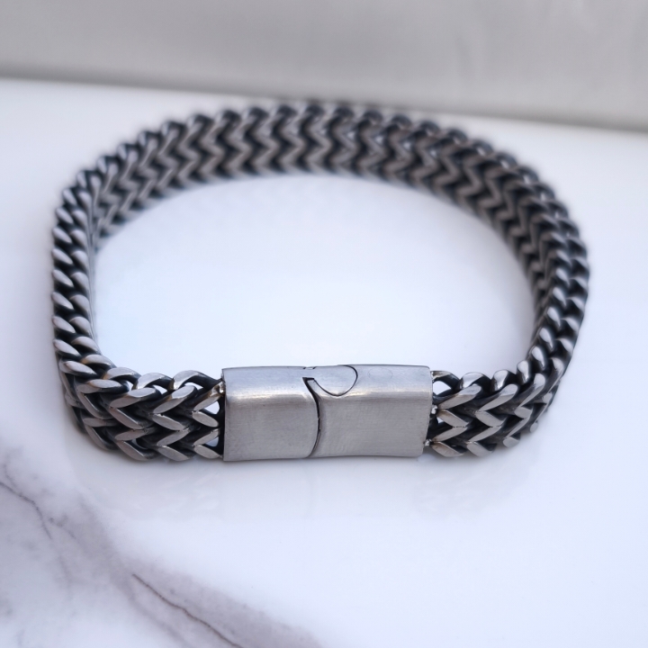 دستبند مردانه زنجیری سیاه قلم استیل ، انتخابی بینقص برای آقایانی است که به دنبال ترکیبی از طراحی کلاسیک ، کیفیت بالا و راحتی در استفاده هستند. این مدل با بافت شیک و مستحکم ، جلوهای قدرتمند و مردانه به استایل شما میبخشد , چه در موقعیتهای رسمی ، چه در استایل روزمره.