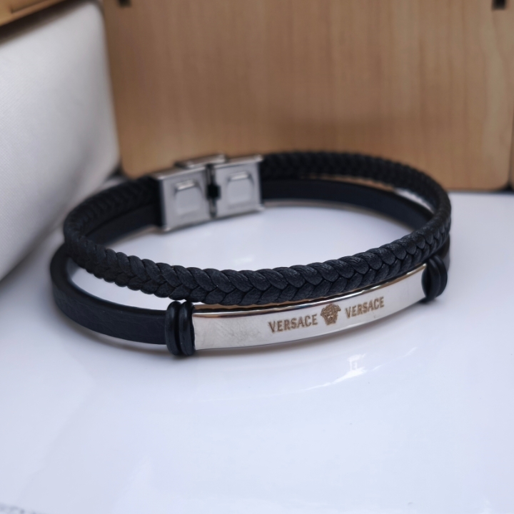 دستبند چرمی مردانه مشکی ورساچه دو دور