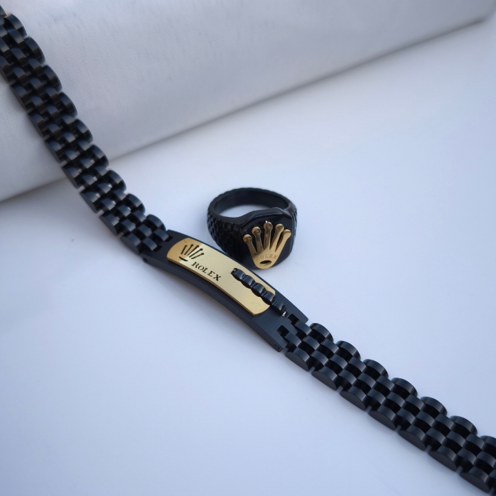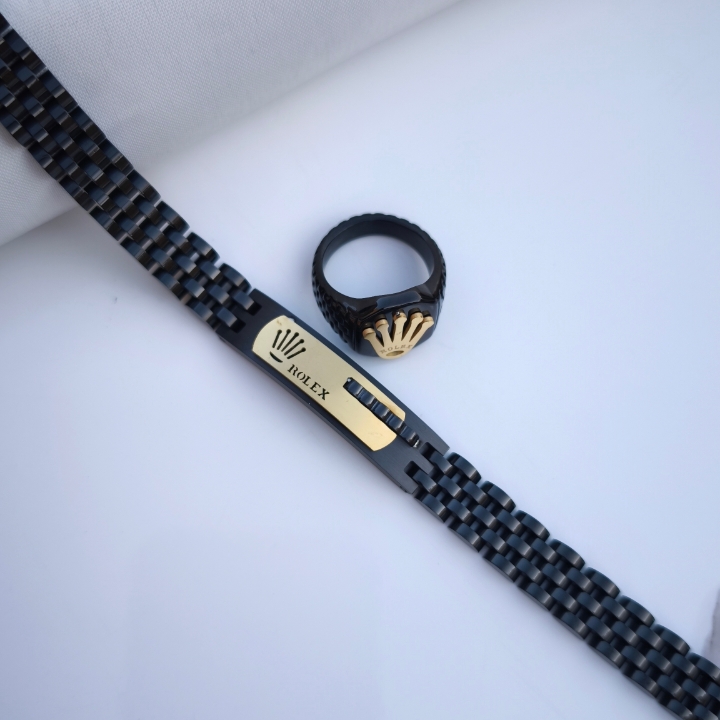 ست دستبند و انگشتر مردانه رولکس مشکی استیل
