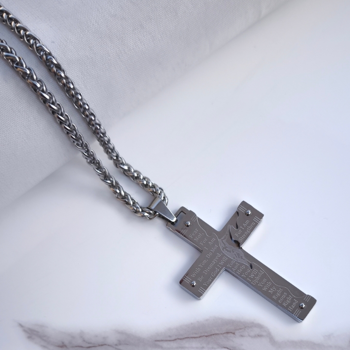 پلاک صلیب مردانه نقره ای استیل یکی از پرطرفدارترین مدلهای اکسسوری مردانه است که هم ظاهر کلاسیک داره، هم حس خاص بودن بهت میده