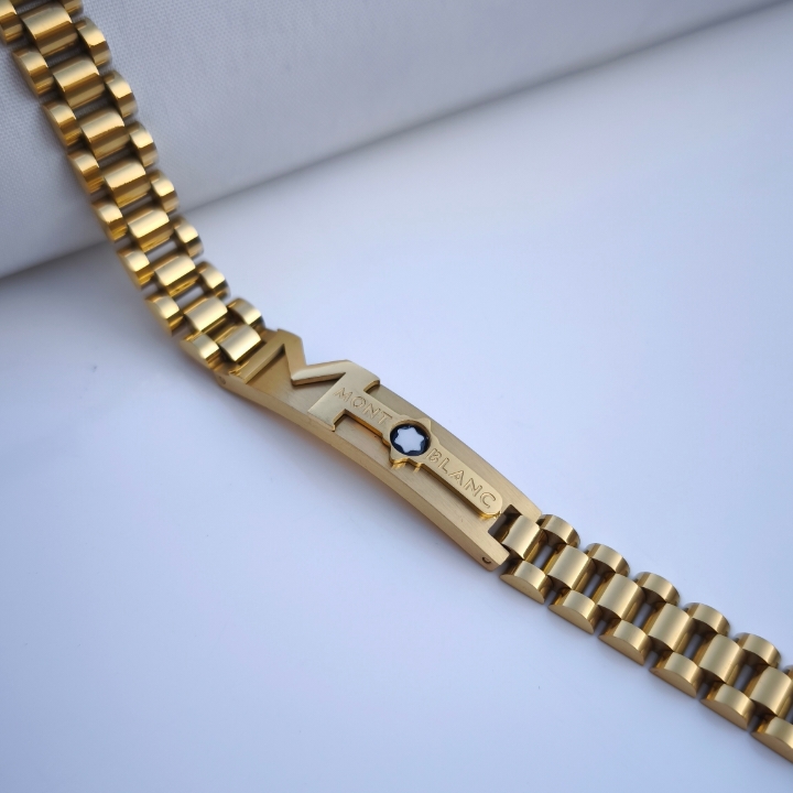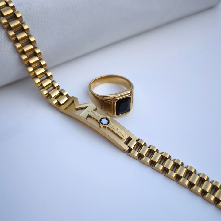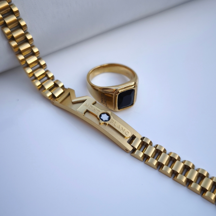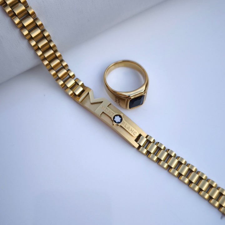 ست دستبند و انگشتر مردانه مونتبلانک طلایی استیل