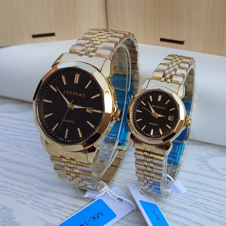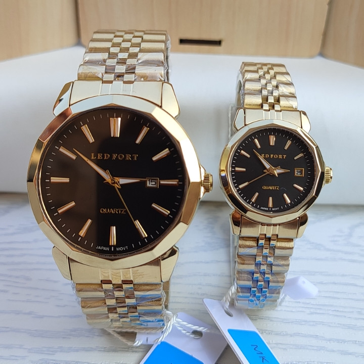 ست ساعت مردانه زنانه طلایی لدفورت استیل گارانتی دار همراه جعبه