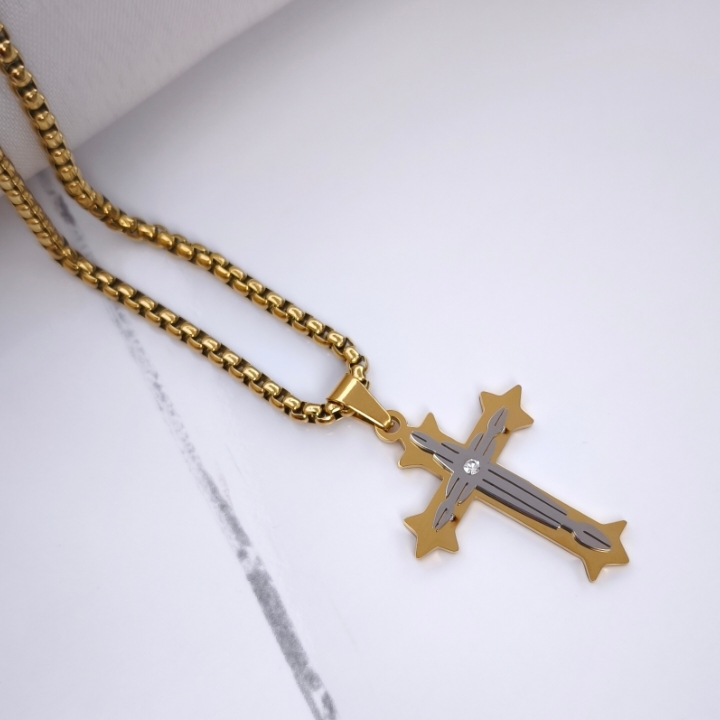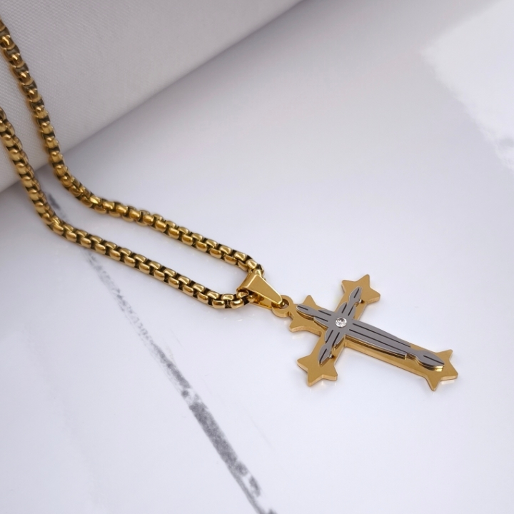 گردنبند صلیب طلایی استیل همراه زنجیر ویتالی