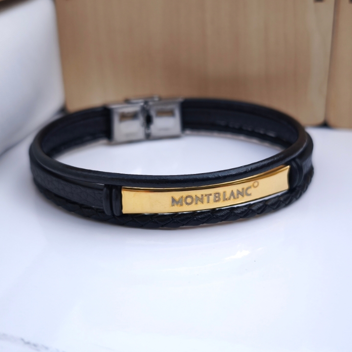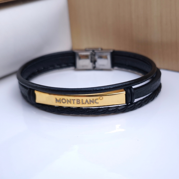 دستبند چرمی پسرانه سه دور مشکی مونتبلانک