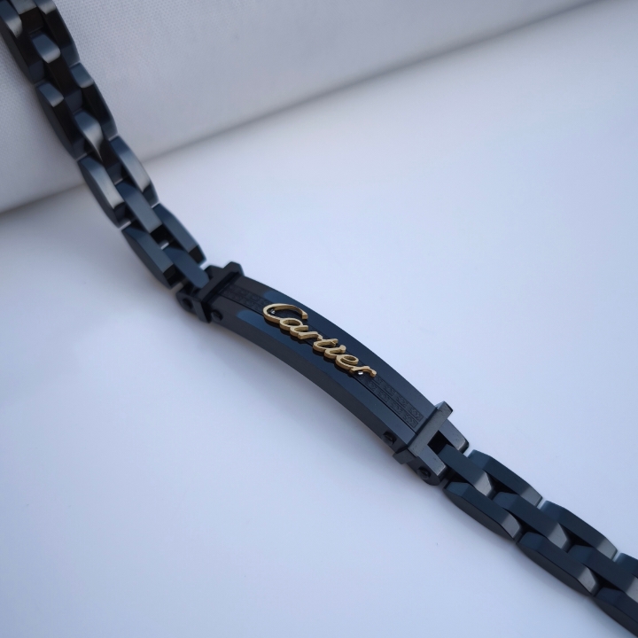 دستبند کارتیر مردانه استیل مشکی طلایی